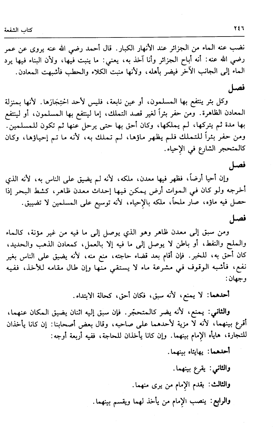 نضب عنه الماء من الجزائر عند الأنهار الكبار. قال أحمد - رَضِيَ اللَّهُ عَنْهُ - يروى عن عمر - رَضِيَ اللَّهُ عَنْهُ -: أنه أباح الجزائر وأنا آخذ به، يعني: ما ينبت فيها، ولأن البناء فيها يرد الماء إلى الجانب الآخر فيضر بأهله، ولأنها منبت الكلأ والحطب فأشبهت المعادن.