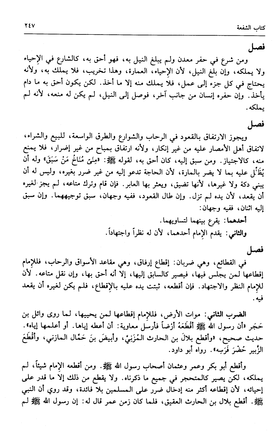 وأقطع أبو بكر وعمر وعثمان أصحاب رسول الله - صَلَّى اللَّهُ عَلَيْهِ وَسَلَّمَ -، ومن أقطعه الإمام شيئًا، لم يملكه؛ لكن يصير كالمتحجر في جميع ما ذكرناه. ولا يقطع من ذلك إلا ما قدر على إحيائه؛ لأن إقطاعه أكثر منه إدخال ضرر على المسلمين بلا فائدة، وقد روي: «أن النبي - صَلَّى اللَّهُ عَلَيْهِ وَسَلَّمَ - أقطع بلال بن الحارث العقيق، فلما كان زمن عمر قال: إن رسول الله - صَلَّى اللَّهُ عَلَيْهِ وَسَلَّمَ - لم