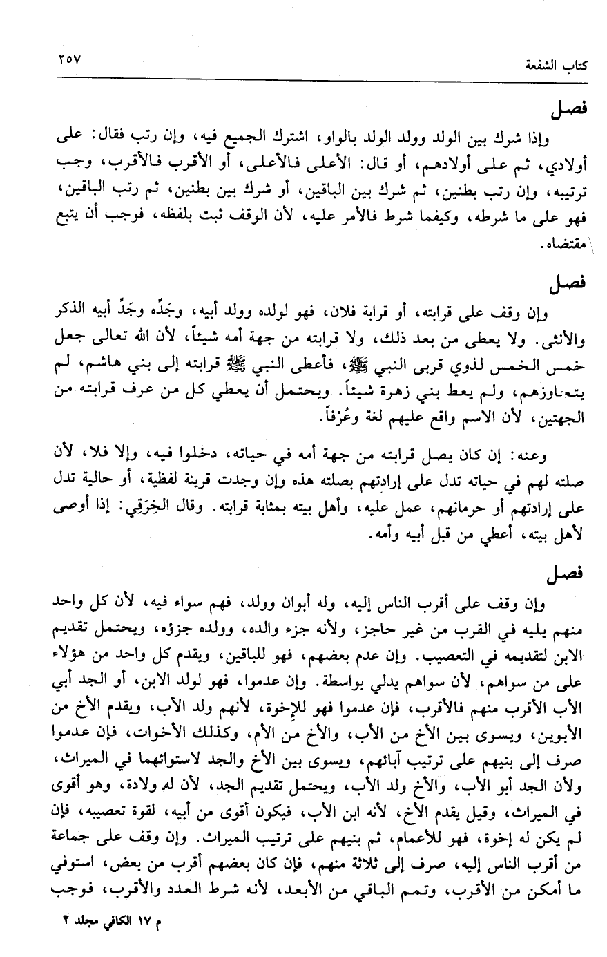 وإن وقف على قرابته، أو قرابة فلان، فهو لولده وولد أبيه، وجده وجد أبيه الذكر والأنثى. ولا يعطى من بعد ذلك، ولا قرابته من جهة أمه شيئاً، لأن الله تعالى جعل خمس الخمس لذوي قربى النبي - صَلَّى اللَّهُ عَلَيْهِ وَسَلَّمَ -، فأعطى النبي - صَلَّى اللَّهُ عَلَيْهِ وَسَلَّمَ - قرابته إلى بني هاشم، لم يتجاوزهم، ولم يعط بني زهرة شيئاً. ويحتمل أن يعطي كل من عرف قرابته من الجهتين، لأن الاسم واقع عليهم لغة وعرفاً.