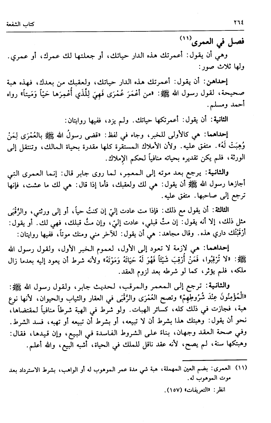 فصل في العمرى: وهي أن يقول: أعمرتك هذه الدار حياتك، أو جعلتها لك عمرك، أو عمري. ولها ثلاث صور: