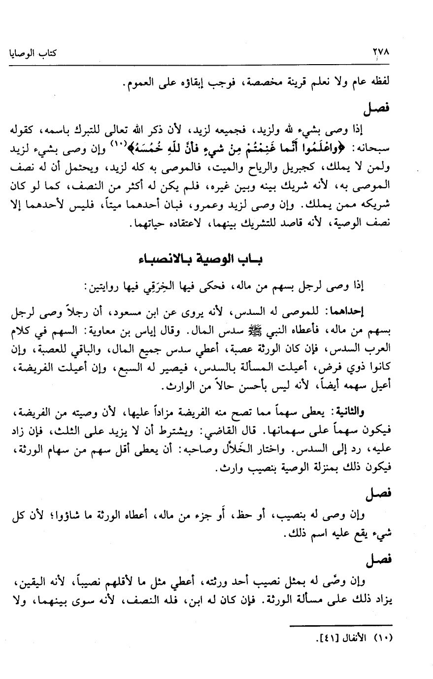 [باب الوصية بالأنصباء]