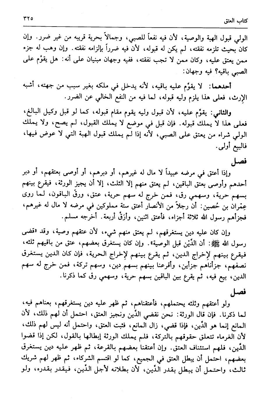 الولي قبول الهبة والوصية، لأن فيه نفعاً للصبي، وجمالاً بحرية قريبه من غير ضرر. وإن كان بحيث تلزمه نفقته، لم يكن له قبوله، لأن فيه ضرراً بإلزامه نفقته. وإن وهب له جزء ممن يعتق عليه، وكان ممن لا تجب نفقته، ففيه وجهان مبنيان على أنه: هل يقوم على الصبي باقيه؟ فيه وجهان: