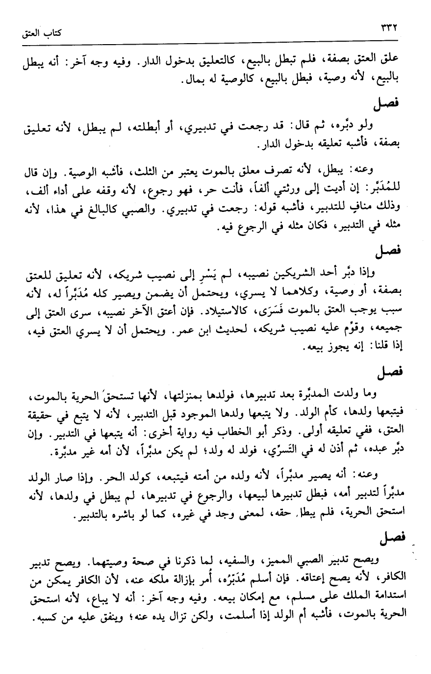 وما ولدت المدبرة بعد تدبيرها، فولدها بمنزلتها، لأنها تستحق الحرية بالموت، فيتبعها ولدها، كأم الولد. ولا يتبعها ولدها الموجود قبل التدبير، لأنه لا يتبع في حقيقة العتق، ففي تعليقه أولى. وذكر أبو الخطاب فيه رواية أخرى: أنه يتبعها في التدبير. وإن دبر عبده، ثم أذن له في التسري، فولد له ولد، لم يكن مدبراً، لأن أمه غير مدبرة.