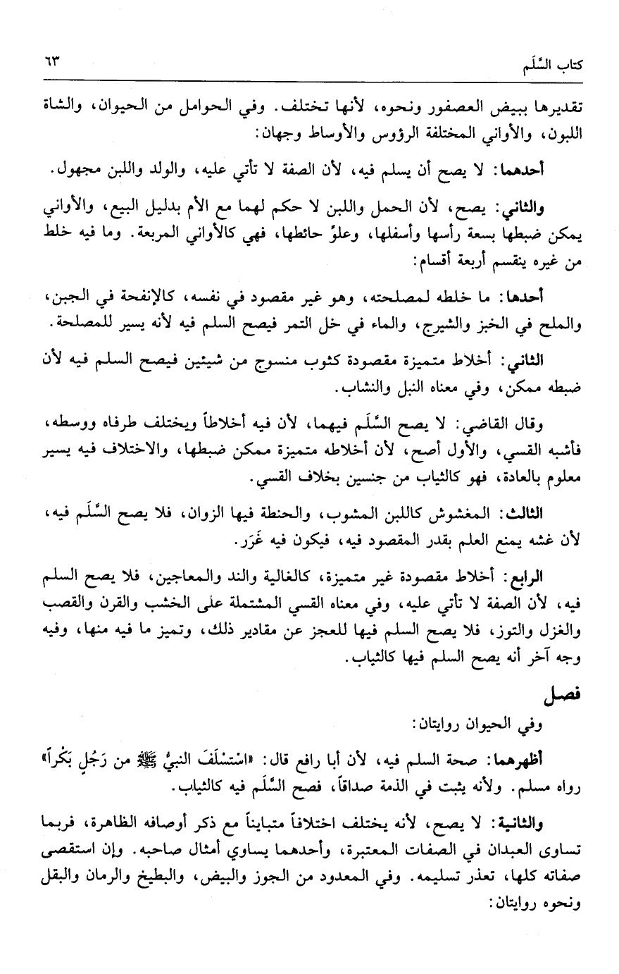 والثانية: لا يصح، لأنه يختلف اختلافاً متبايناً مع ذكر أوصافه الظاهرة، فربما تساوى العبدان في الصفات المعتبرة، وأحدهما يساوي أمثال صاحبه. وإن استقصى صفاته كلها تعذر تسليمه. وفي المعدود من الجوز والبيض، والبطيخ والرمان والبقل ونحوه روايتان: