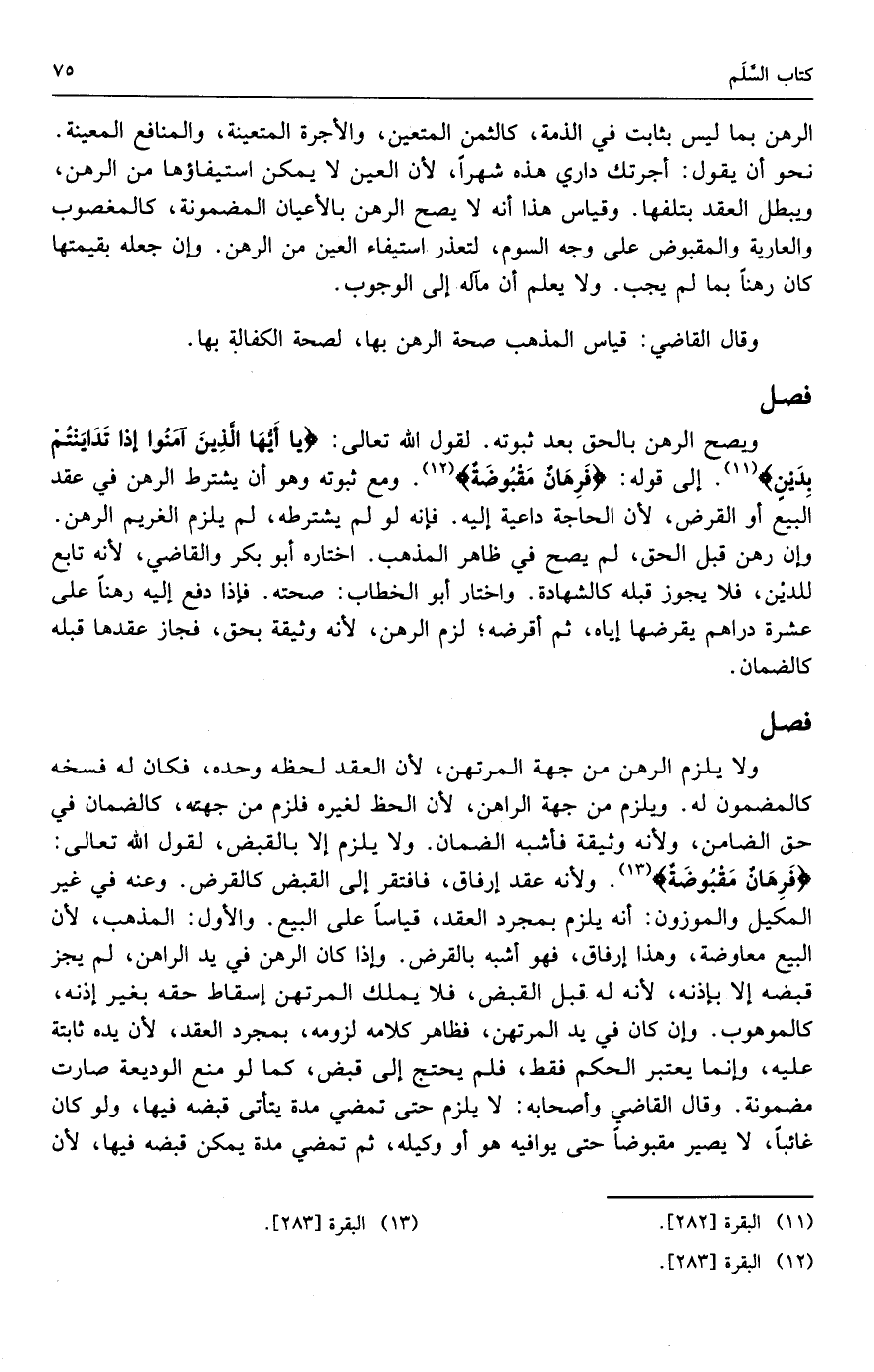 ولا يلزم الرهن من جهة المرتهن؛ لأن العقد لِحَظِّهِ وحده، فكان له فسخه كالمضمون له. ويلزمه من جهة الراهن؛ لأن الحظ لغيره فلزمه من جهته، كالضمان في حق الضامن، ولأنه وثيقة فأشبه الضمان. ولا يلزم إلا بالقبض؛ لقول الله تعالى: {فَرِهَانٌ مَقْبُوضَةٌ} [البقرة: 283] . ولأنه عقد إرفاق، فافتقر إلى القبض كالقرض. وعنه في غير المكيل والموزون: أنه يلزم بمجرد العقد، قياساً على البيع. والأول: المذهب؛ لأن البيع معاوضة، وهذا إرفاق، فهو أشبه بالقرض. وإذا كان الرهن في يد الراهن، لم يجز قبضه إلا بإذنه؛ لأنه له قبل القبض، فلا يملك المرتهن إسقاط حقه بغير إذنه، كالموهوب. وإن كان في يد المرتهن، فظاهر كلامه لزومه، بمجرد العقد؛ لأن يده ثابتة عليه، وإنما يعتبر الحكم فقط، فلم يحتج إلى قبض، كما لو منع الوديعة صارت مضمونة. وقال القاضي وأصحابه: لا يلزمه حتى تمضي مدة يتأتى قبضه فيها، ولو كان غائباً، لا يصير مقبوضاً حتى يوافيه هو أو وكيله، ثم تمضي مدة يمكن قبضه فيها؛ لأن