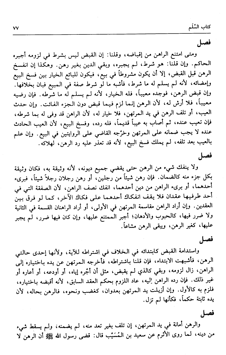 ولا ينفك شيء من الرهن حتى يقضي جميع ديونه؛ لأنه وثيقة به، فكان وثيقة بكل جزء منه كالضمان. فإن رهن شيئا من رجلين، أو رهن رجلان رجلاً شيئاً، فبرئ أحدهما، أو برئ الراهن من دين أحدهما، انفك نصف الراهن؛ لأن الصفقة التي في أحد طرفيها عقدان فلا يقف انفكاك أحدهما على فكاك الآخر، كما لو فرق بين العقدين. وإن أراد الراهن مقاسمة المرتهن في الأولى، أو أراد الراهنان القسمة في الثانية ولا ضرر فيها، كالحبوب والأدهان، أجبر الممتنع عليها، وإن كان فيها ضرر، لم يجبر عليها، كغير الرهن، ويبقى الرهن مشاعاً.