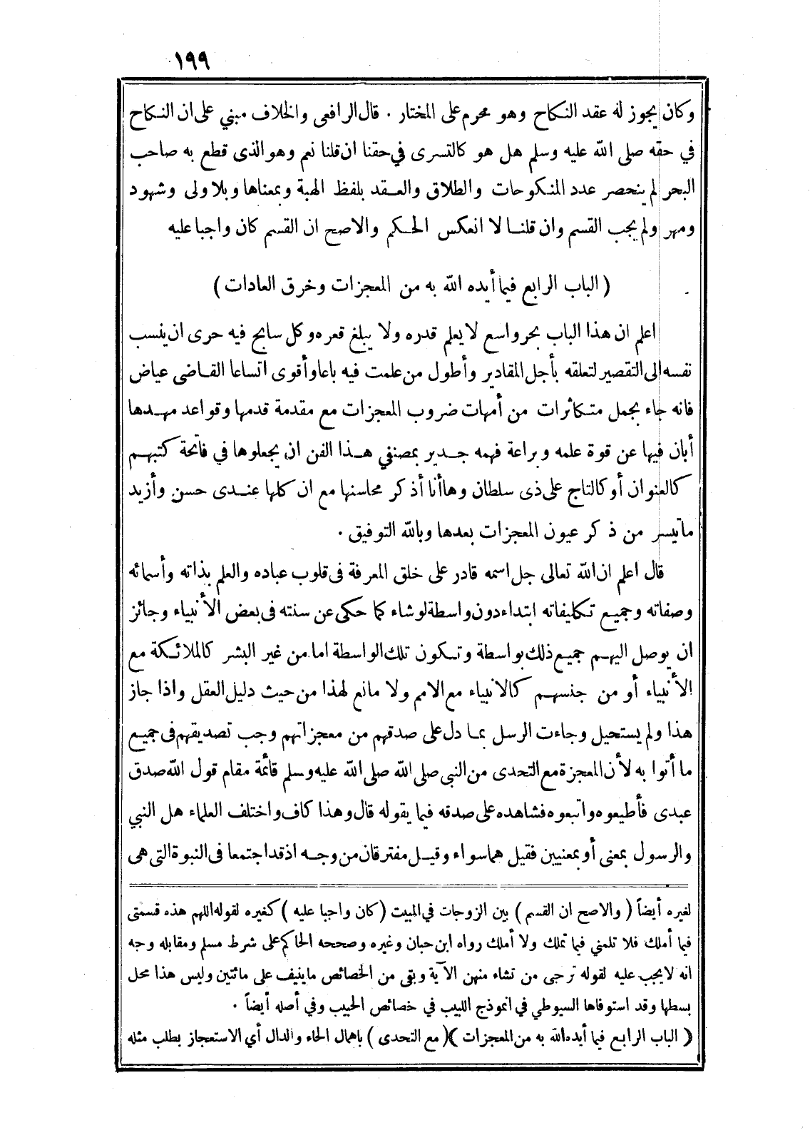 (الباب الرابع فيما أيده الله به من المعجزات وخرق العادات) اعلم ان هذا الباب بحر واسع لا يعلم قدره ولا يبلغ قعره وكل سابح فيه حرى ان ينسب نفسه الى التقصير لتعلقه بأجل المقادير وأطول من علمت فيه باعا وأقوى اتساعا القاضى عياض فانه جاء بجمل متكاثرات من أمهات ضروب المعجزات مع مقدمة قدمها وقواعد مهدها أبان فيها عن قوة علمه وبراعة فهمه جدير بمصنفي هذا الفن ان يجعلوها في فاتحة كتبهم كالعنوان أو كالتاج على ذى سلطان وها أنا أذكر محاسنها مع ان كلها عندى حسن وأزيد ما تيسر من ذكر عيون المعجزات بعدها وبالله التوفيق.