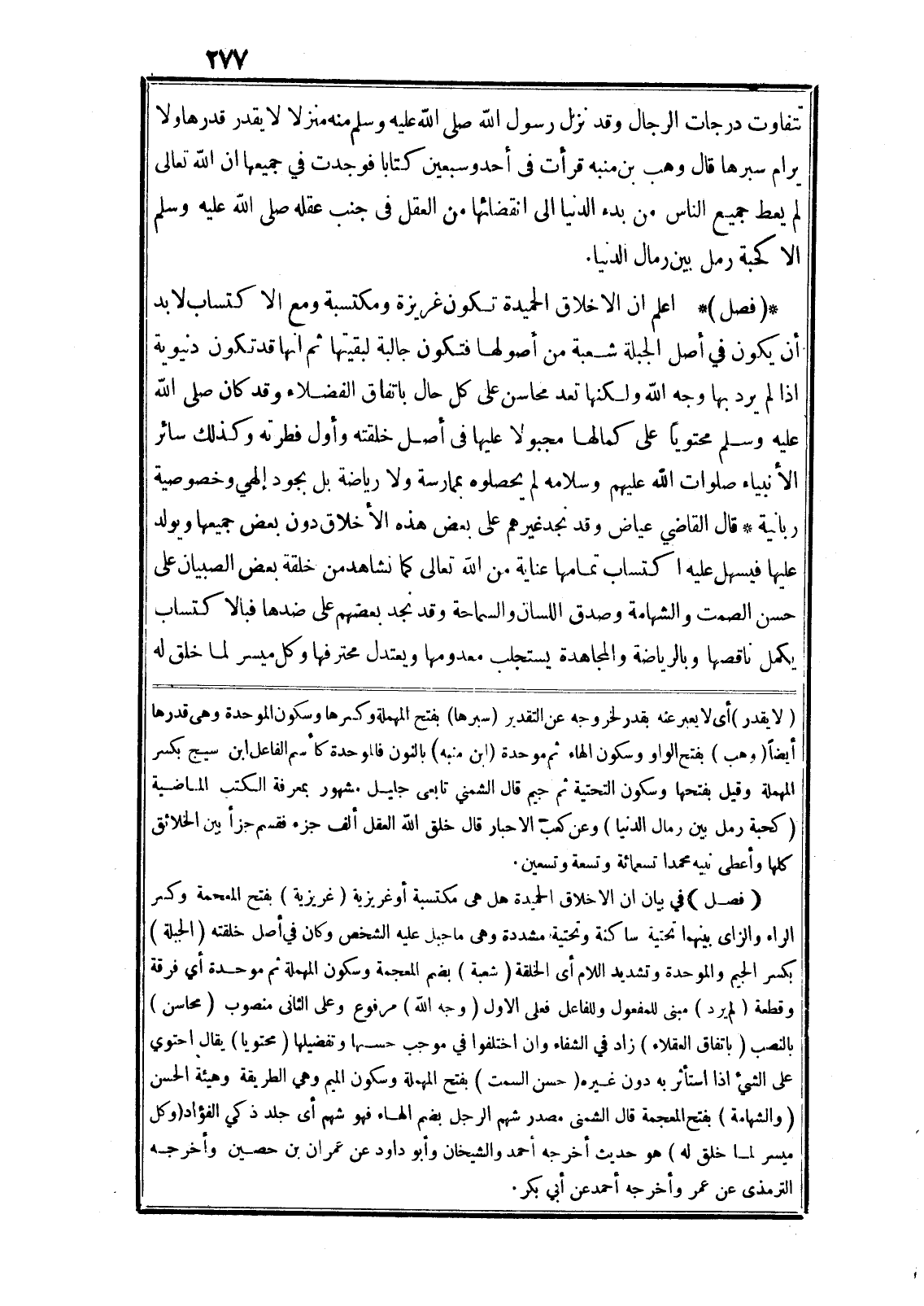 [فصل اعلم أن الأخلاق الحميدة تكون غريزة ومكتسبة]