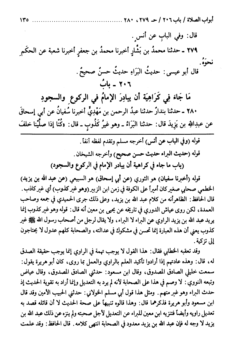 [280] قَوْلُهُ (حَدِيثُ الْبَرَاءِ حَدِيثٌ حَسَنٌ صَحِيحٌ) وَأَخْرَجَهُ الشَّيْخَانِ