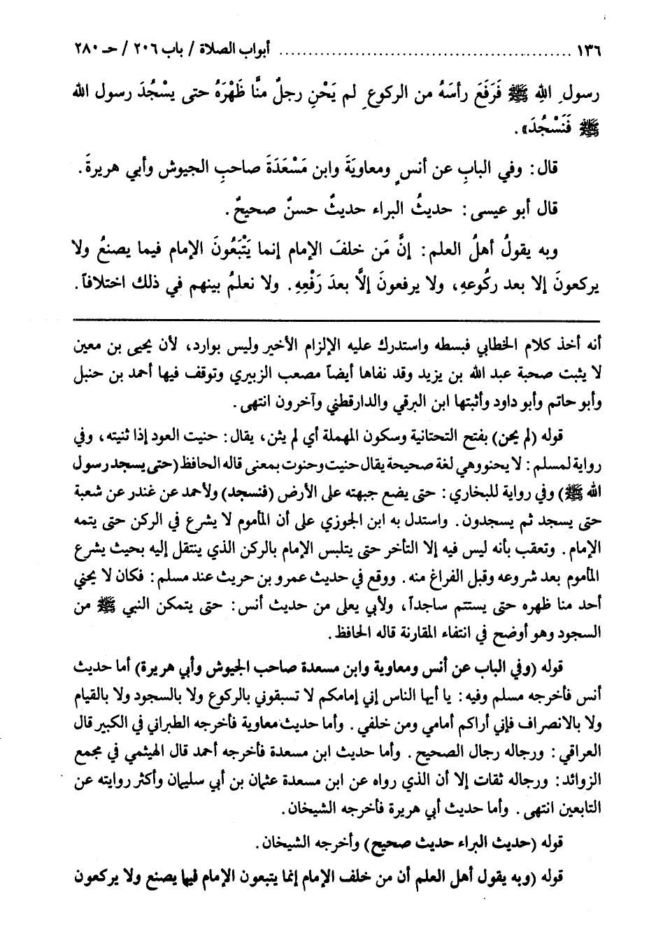 قَوْلُهُ (لَمْ يَحْنِ) بِفَتْحِ التَّحْتَانِيَّةِ وَسُكُونِ الْمُهْمَلَةِ أَيْ لَمْ يُثْنِ يُقَالُ حَنَيْتُ الْعُودَ إِذَا ثَنَيْتُهُ وَفِي رِوَايَةٍ لِمُسْلِمٍ لَا يَحْنُو وَهِيَ لُغَةٌ صَحِيحَةٌ يُقَالُ حَنَيْتُ وَحَنَوْتُ بِمَعْنًى قَالَهُ الْحَافِظُ (حَتَّى يَسْجُدَ رَسُولُ اللَّهِ صَلَّى اللَّهُ عَلَيْهِ وَسَلَّمَ) وَفِي رِوَايَةٍ لِلْبُخَارِيِّ حَتَّى يَضَعَ جَبْهَتَهُ عَلَى الْأَرْضِ (فنسجد) ولأحمد عَنْ غُنْدَرٍ عَنْ شُعْبَةَ حَتَّى يَسْجُدَ ثُمَّ يسجدون