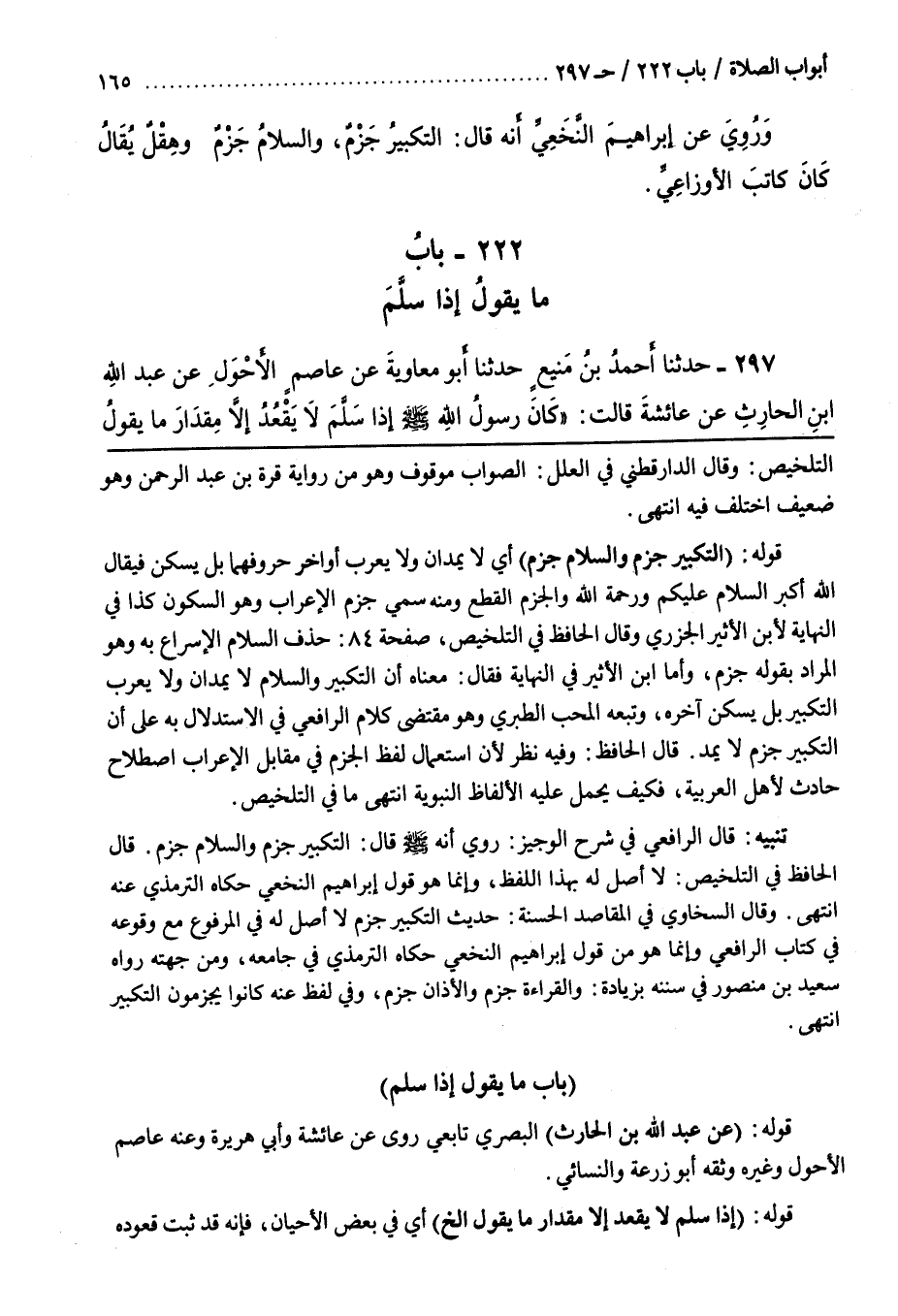 قَالَ الْحَافِظُ وَفِيهِ نَظَرٌ لِأَنَّ اسْتِعْمَالَ لَفْظِ الْجَزْمِ فِي مُقَابِلِ الْإِعْرَابِ اصْطِلَاحٌ حَادِثٌ لِأَهْلِ الْعَرَبِيَّةِ فَكَيْفَ يُحْمَلُ عَلَيْهِ الْأَلْفَاظُ النَّبَوِيَّةُ انْتَهَى مَا فِي التَّلْخِيصِ
