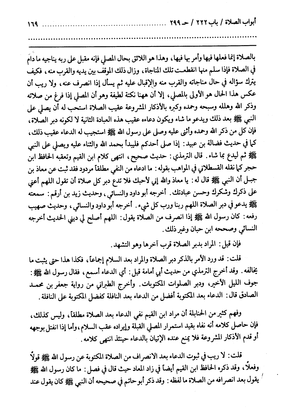 قَالَ التِّرْمِذِيُّ حديث صحيح انتهى كلام بن القيم وتعقبه الحافظ بن حَجَرٍ كَمَا نَقَلَهُ الْقَسْطَلَّانِيُّ فِي الْمَوَاهِبِ بِقَوْلِهِ مَا ادَّعَاهُ مِنَ النَّفْيِ مُطْلَقًا مَرْدُودٌ فَقَدْ ثَبَتَ عَنْ مُعَاذِ بْنِ جَبَلٍ أَنَّ النَّبِيَّ صَلَّى اللَّهُ عَلَيْهِ وَسَلَّمَ قَالَ لَهُ يَا مُعَاذُ وَاللَّهِ إِنِّي لَأُحِبُّكَ فَلَا تَدَعْ دُبُرَ كُلِّ صَلَاةٍ أَنْ تَقُولَ اللَّهُمَّ أَعِنِّي عَلَى ذِكْرِكَ وَشُكْرِكَ وَحُسْنِ عِبَادَتِكَ