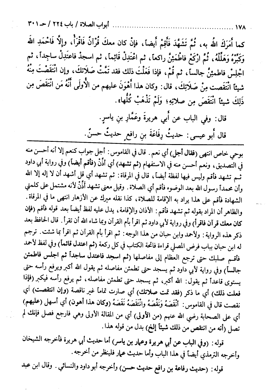 قَوْلُهُ (حَدِيثُ رِفَاعَةَ بْنِ رَافِعٍ حَدِيثٌ حسن) وأخرجه أبو داود والنسائي