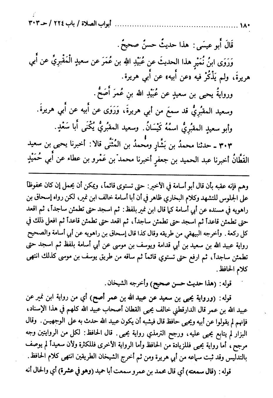 وَأَخْرَجَهُ الْبَيْهَقِيُّ مِنْ طَرِيقِهِ وَقَالَ كَذَا إِسْحَاقُ بْنُ رَاهَوَيْهِ عَنْ أَبِي أُسَامَةَ وَالصَّحِيحُ رِوَايَةُ عُبَيْدِ اللَّهِ بْنِ سَعِيدِ بْنِ أَبِي قُدَامَةَ وَيُوسُفَ بْنِ مُوسَى عَنْ أَبِي أُسَامَةَ بِلَفْظِ ثُمَّ اسْجُدْ حَتَّى تَطْمَئِنَّ سَاجِدًا ثُمَّ ارْفَعْ حَتَّى تَسْتَوِيَ قَائِمًا ثُمَّ سَاقَهُ مِنْ طَرِيقِ يُوسُفَ بْنِ مُوسَى كَذَلِكَ انْتَهَى كَلَامُ الْحَافِظِ