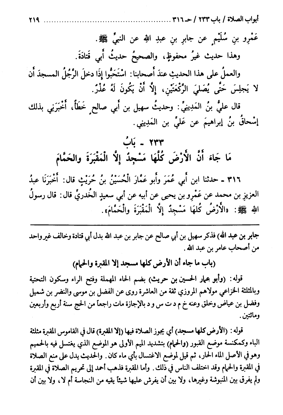 21 - (بَاب مَا جاء أن الأرض كلها مسجد إلا المقبرة وَالْحَمَّامَ [317])