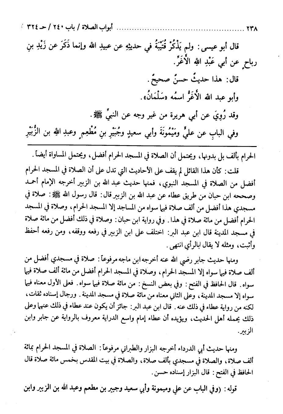 قُلْتُ كَأَنَّ هَذَا الْقَائِلَ لَمْ يَقِفْ عَلَى الْأَحَادِيثِ الَّتِي تَدُلُّ عَلَى أَنَّ الصَّلَاةَ فِي الْمَسْجِدِ الْحَرَامِ أَفْضَلُ مِنَ الصَّلَاةِ فِي الْمَسْجِدِ النَّبَوِيِّ فَمِنْهَا حَدِيثُ عَبْدِ اللَّهِ بْنِ الزُّبَيْرِ أَخْرَجَهُ الْإِمَامُ أحمد وصححه بن حِبَّانَ مِنْ طَرِيقِ عَطَاءٍ عَنْ عَبْدِ اللَّهِ بْنِ الزُّبَيْرِ قَالَ قَالَ رَسُولُ اللَّهِ صَلَّى اللَّهُ عَلَيْهِ وَسَلَّمَ صَلَاةٌ فِي مَسْجِدِي هَذَا أَفْضَلُ مِنْ أَلْفِ صَلَاةٍ فِيمَا سِوَاهُ مِنَ الْمَسَاجِدِ إِلَّا الْمَسْجِدَ الْحَرَامَ وَصَلَاةٌ فِي الْمَسْجِدِ الْحَرَامِ أَفْضَلُ مِنْ مِائَةِ صَلَاةٍ فِي هَذَا
