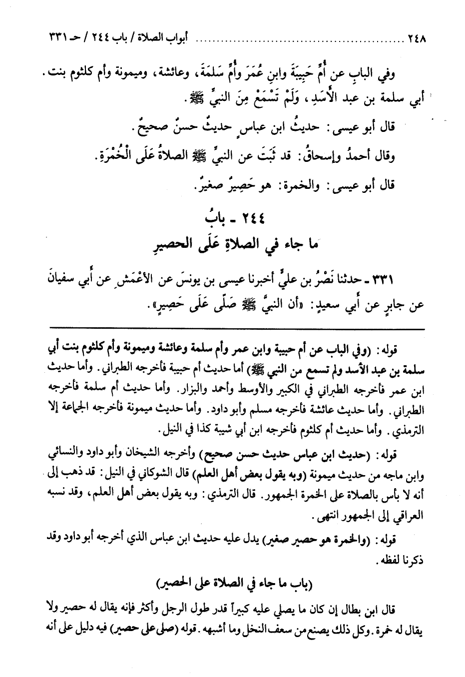 32 - (بَاب مَا جَاءَ فِي الصَّلَاةِ عَلَى الحصير [332])