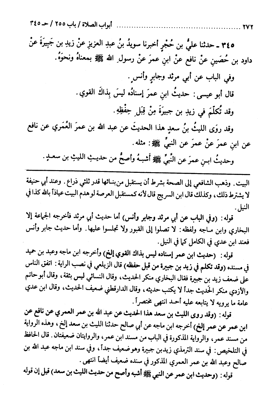 [347] قَوْلُهُ (وَفِي الْبَابِ عَنْ أَبِي مَرْثَدٍ وَجَابِرٍ وَأَنَسٍ) أَمَّا حَدِيثُ أَبِي مَرْثَدٍ فَأَخْرَجَهُ الْجَمَاعَةُ إِلَّا البخاري وبن مَاجَهْ وَلَفْظُهُ لَا تُصَلُّوا إِلَى الْقُبُورِ وَلَا تَجْلِسُوا عَلَيْهَا