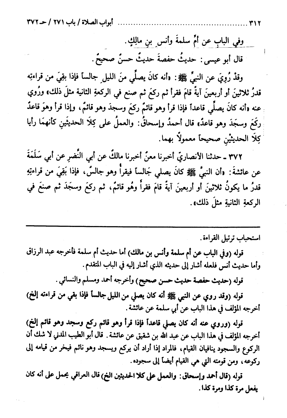 قَوْلُهُ (وَقَدْ رُوِيَ عَنِ النَّبِيِّ صَلَّى اللَّهُ عَلَيْهِ وَسَلَّمَ أَنَّهُ كَانَ يُصَلِّي مِنَ اللَّيْلِ جَالِسًا فَإِذَا بَقِيَ مِنْ قِرَاءَتِهِ إِلَخْ) أَخْرَجَهُ الْمُؤَلِّفُ فِي هَذَا الْبَابِ عَنْ أَبِي سَلَمَةَ عَنْ عَائِشَةَ