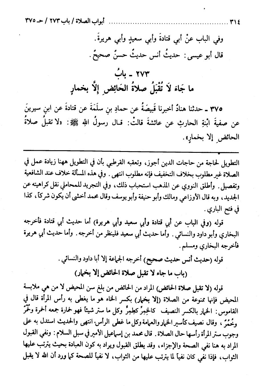 277 - (بَاب مَا جَاءَ لَا تقبل صلاة الحائض إِلَّا بِخِمَارٍ [377])