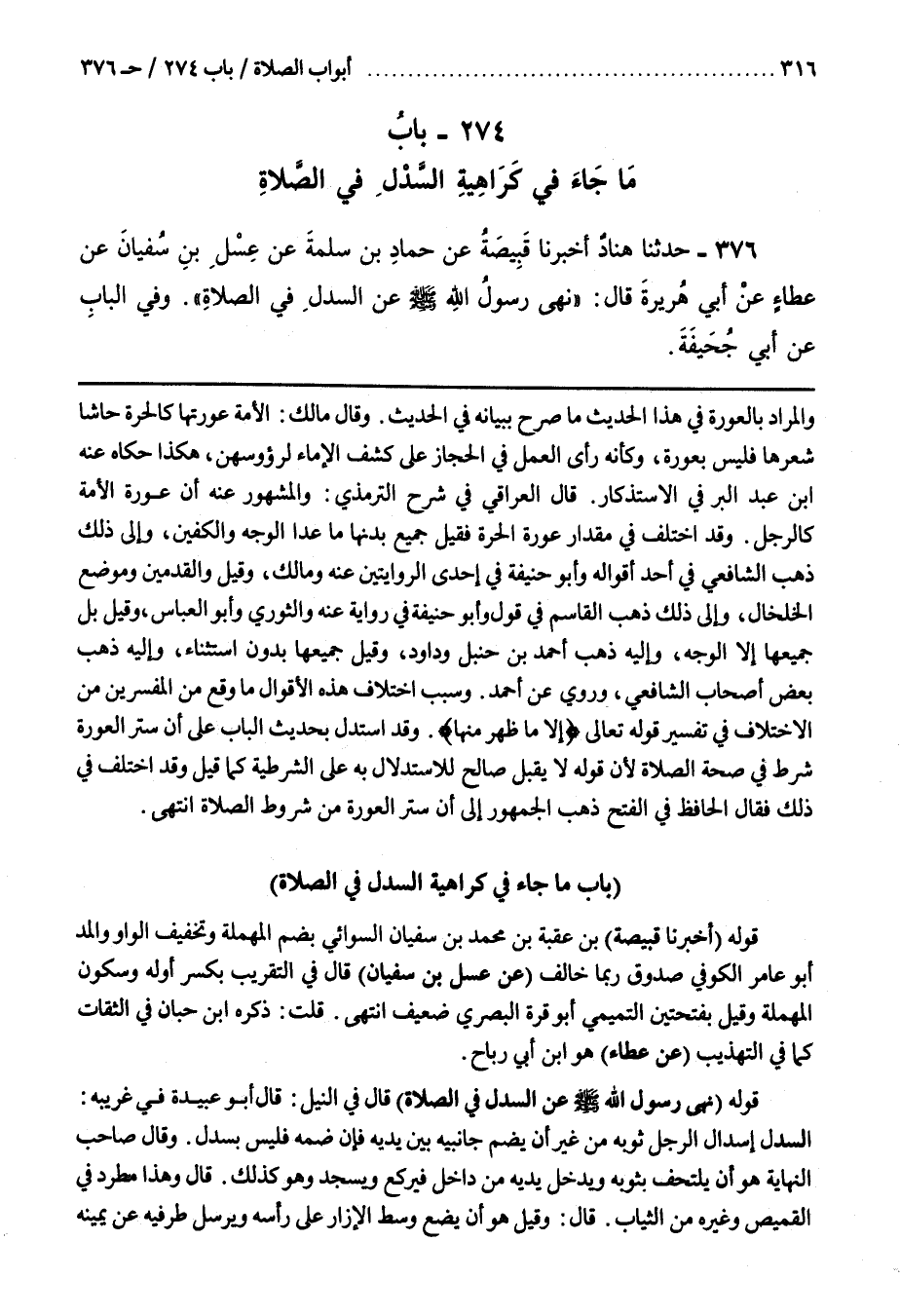 63 - (بَاب مَا جَاءَ فِي كَرَاهِيَةِ السَّدْلِ فِي الصَّلَاةِ [378])