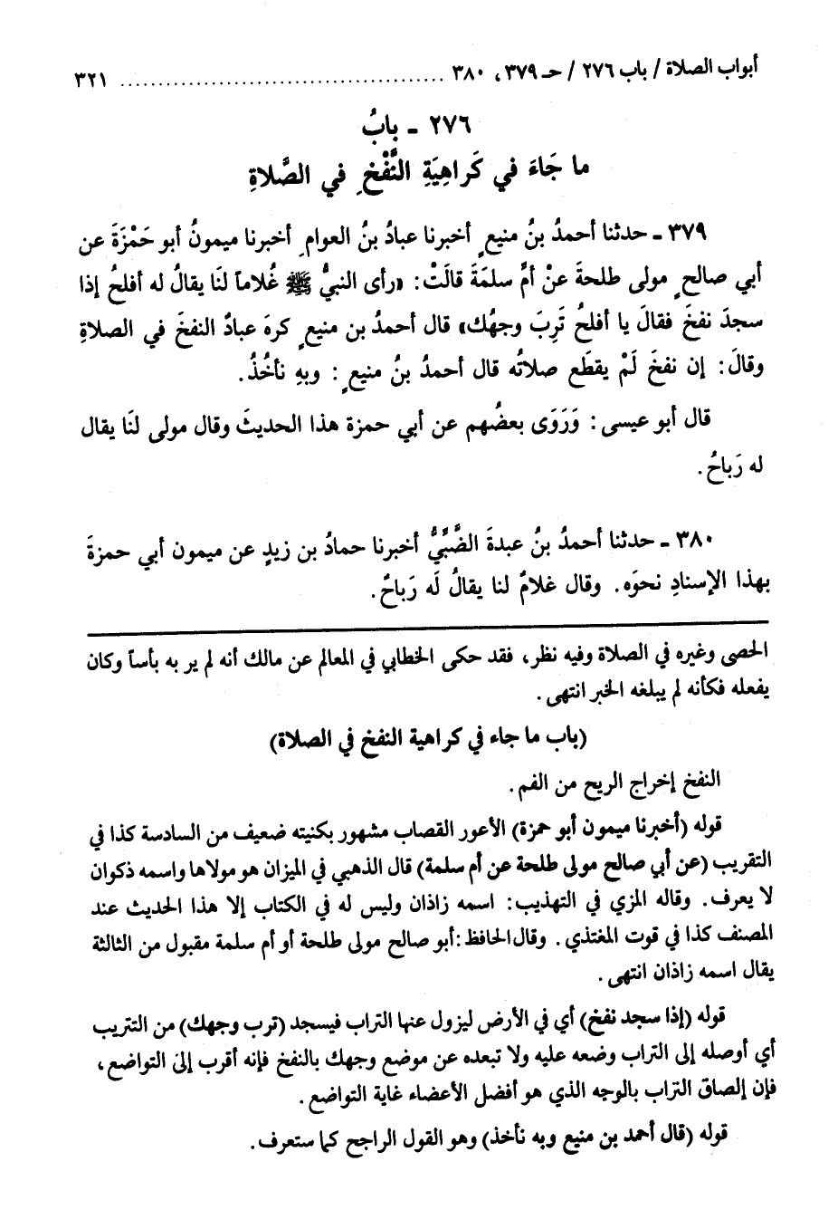 65 - (بَاب مَا جَاءَ فِي كَرَاهِيَةِ النَّفْخِ فِي الصَّلَاةِ [381])