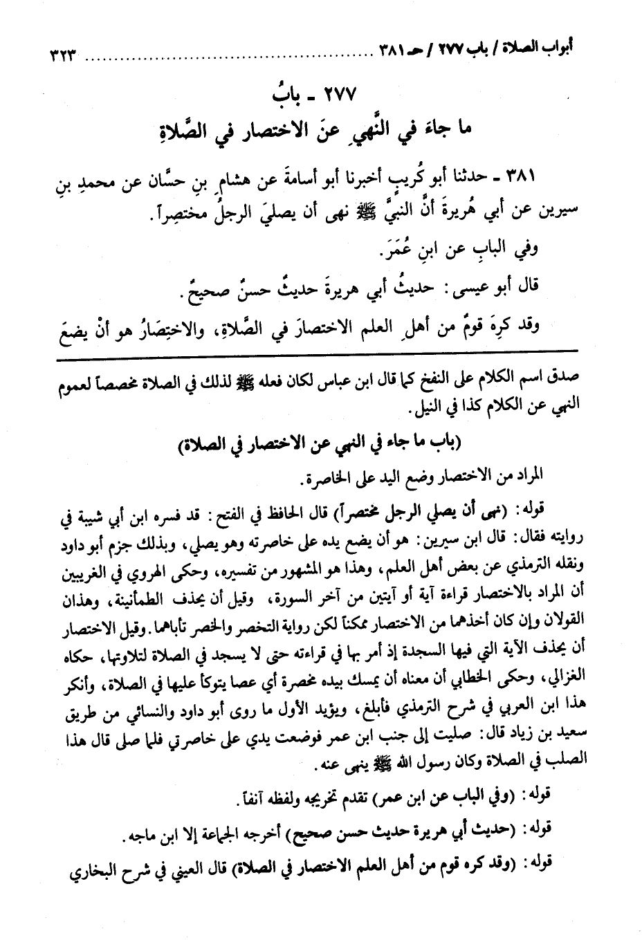 66 - (بَاب مَا جَاءَ فِي النَّهْيِ عَنِ الِاخْتِصَارِ فِي الصَّلَاةِ [382])