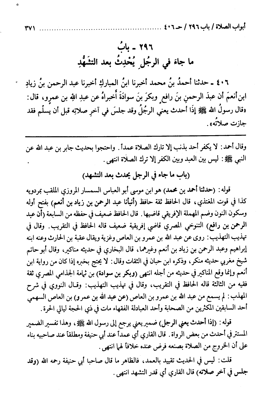 85 - (بَاب مَا جَاءَ فِي الرجل يحدث بعد التَّشَهُّدِ [408])
