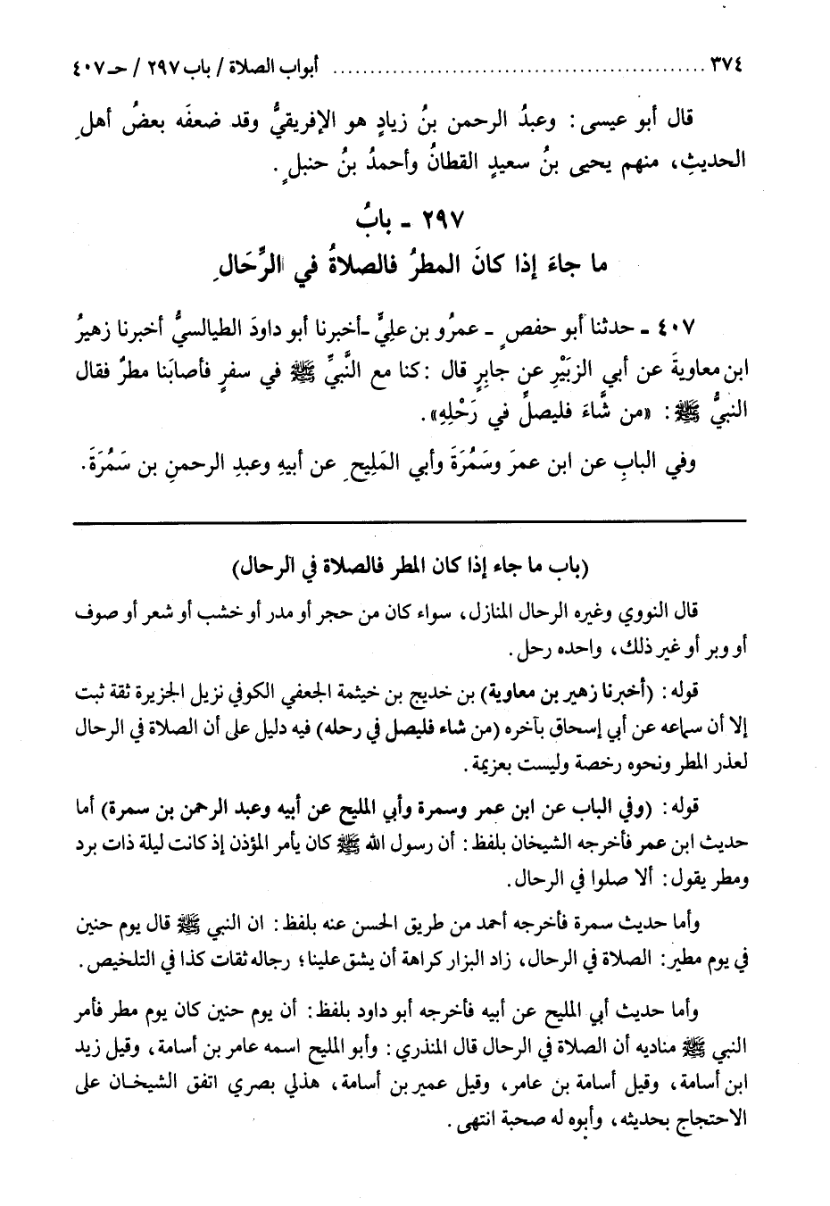 186 - (باب ما جاء إذا كان المطر فالصلاة فِي الرِّحَالِ [409])