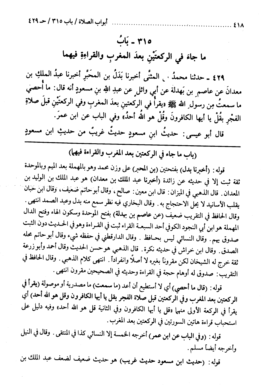 204319 - (باب ما جاء في الركعتين بعد المغرب وَالْقِرَاءَةِ فِيهِمَا [431])
