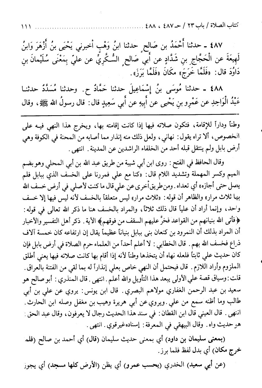 وَقَالَ الْحَافِظُ فِي الفتح روى بن أَبِي شَيْبَةَ مِنْ طَرِيقِ عَبْدِ اللَّهِ بْنِ أَبِي الْمُحِلِّيِّ وَهُوَ بِضَمِّ الْمِيمِ وَكَسْرِ الْمُهْمَلَةِ وَتَشْدِيدِ اللَّامِ قَالَ كُنَّا مَعَ عَلِيٍّ فَمَرَرْنَا عَلَى الْخَسْفِ الَّذِي بِبَابِلَ فَلَمْ يُصَلِّ حَتَّى أجازه أي تعداه