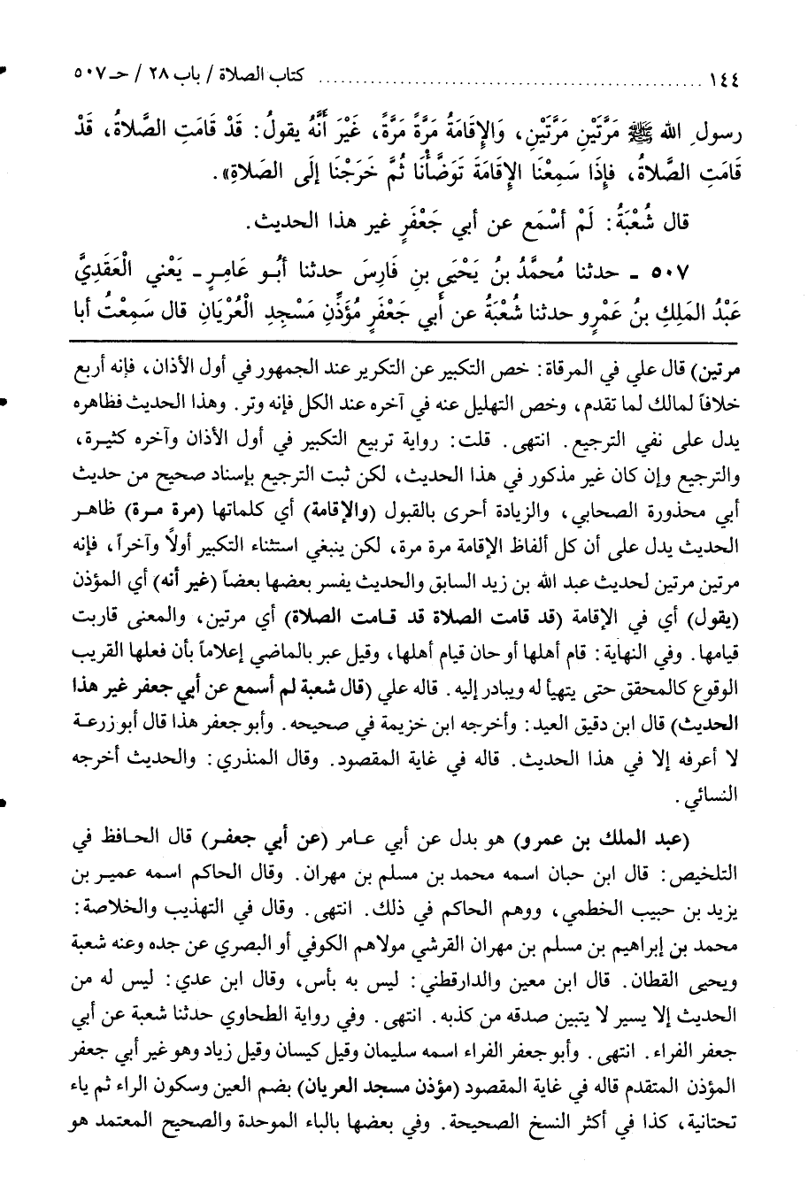 [511] (عَبْدَ الْمَلِكِ بْنَ عَمْرٍو) هُوَ بَدَلٌ عَنْ أَبِي عَامِرٍ (عَنْ أَبِي جعفر) قال الحافظ في التلخيص قال بن حِبَّانَ اسْمُهُ مُحَمَّدُ بْنُ مُسْلِمِ بْنِ مِهْرَانَ