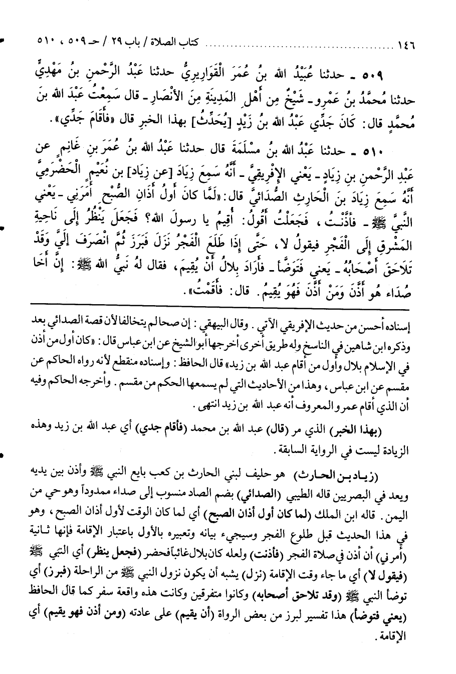 [514] (زِيَادَ بْنَ الْحَارِثِ) هُوَ حَلِيفٌ لِبَنِي الْحَارِثِ بْنِ كَعْبٍ بَايَعَ النَّبِيَّ صَلَّى اللَّهُ عَلَيْهِ وَسَلَّمَ وَأَذَّنَ بَيْنَ يَدَيْهِ وَيُعَدُّ فِي الْبَصْرِيِّينَ قَالَهُ الطِّيبِيُّ (الصُّدَائِيَّ) بِضَمِّ الصَّادِ مَنْسُوبٌ إِلَى صُدَاءَ مَمْدُودًا وَهُوَ حَيٌّ من اليمن