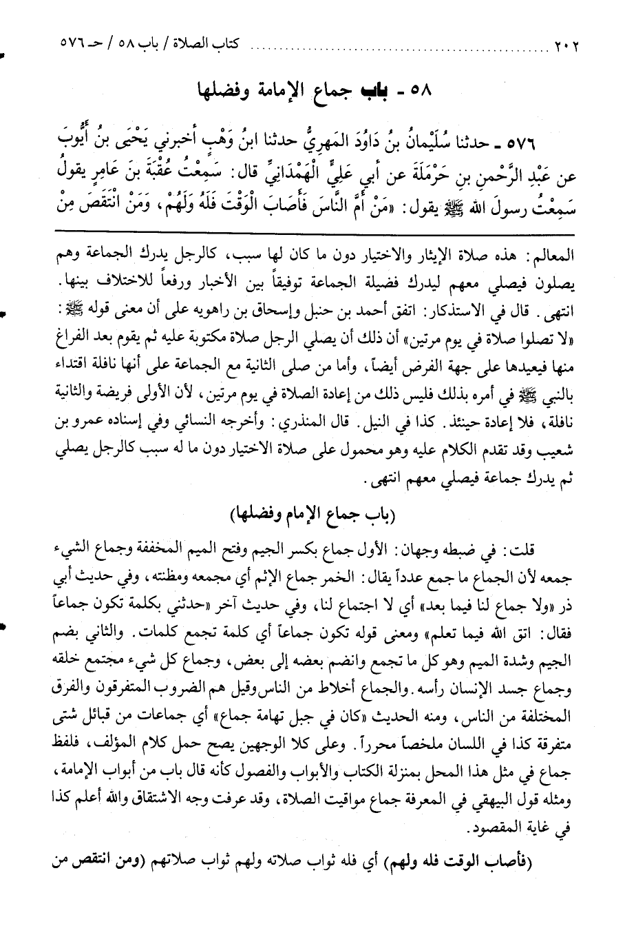 وَعَلَى كِلَا الْوَجْهَيْنِ يَصِحُّ حَمْلُ كَلَامِ الْمُؤَلِّفِ فَلَفْظُ جِمَاعٍ فِي مِثْلِ هَذَا الْمَحَلِّ بِمَنْزِلَةِ الْكِتَابِ وَالْأَبْوَابِ وَالْفُصُولِ كَأَنَّهُ قَالَ بَابٌ مِنْ أَبْوَابِ الْإِمَامَةِ وَمِثْلُهُ قَوْلُ الْبَيْهَقِيِّ فِي الْمَعْرِفَةِ جِمَاعُ مَوَاقِيتِ الصَّلَاةِ وَقَدْ عَرَفْتَ وَجْهَ الِاشْتِقَاقِ وَاللَّهُ أَعْلَمُ كَذَا فِي غَايَةِ الْمَقْصُودِ