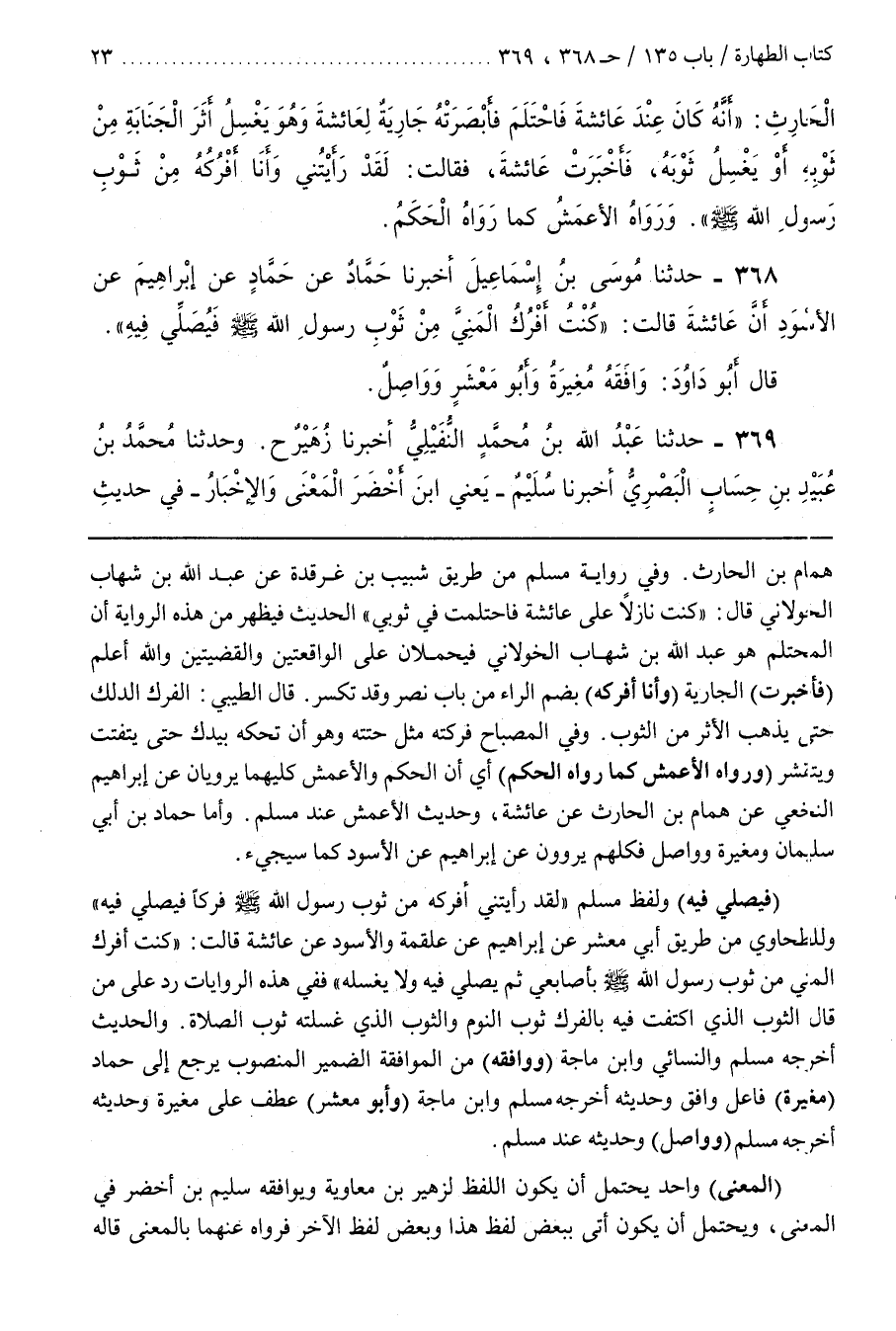 [372] (فَيُصَلِّي فِيهِ) وَلَفْظُ مُسْلِمٍ لَقَدْ رَأَيْتُنِي أَفْرُكُهُ مِنْ ثَوْبِ رَسُولِ اللَّهِ صلى الله عليه وسلم فَرْكًا فَيُصَلِّي فِيهِ وَلِلطَّحَاوِيِّ مِنْ طَرِيقِ أَبِي مَعْشَرٍ عَنْ إِبْرَاهِيمَ عَنْ عَلْقَمَةَ وَالْأَسْوَدِ عَنْ عَائِشَةَ قَالَتْ كُنْتُ أَفْرُكُ الْمَنِيَّ مِنْ ثَوْبِ رَسُولِ اللَّهِ صَلَّى اللَّهُ عَلَيْهِ وَسَلَّمَ بِأَصَابِعِي ثُمَّ يُصَلِّي فِيهِ وَلَا يَغْسِلُهُ فَفِي هَذِهِ الرِّوَايَاتِ رَدٌّ عَلَى مَنْ قَالَ الثَّوْبُ الَّذِي اكْتَفَتْ فِيهِ بِالْفَرْكِ ثَوْبُ النَّوْمِ وَالثَّوْبُ الَّذِي غَسَلَتْهُ ثَوْبُ الصَّلَاةِ