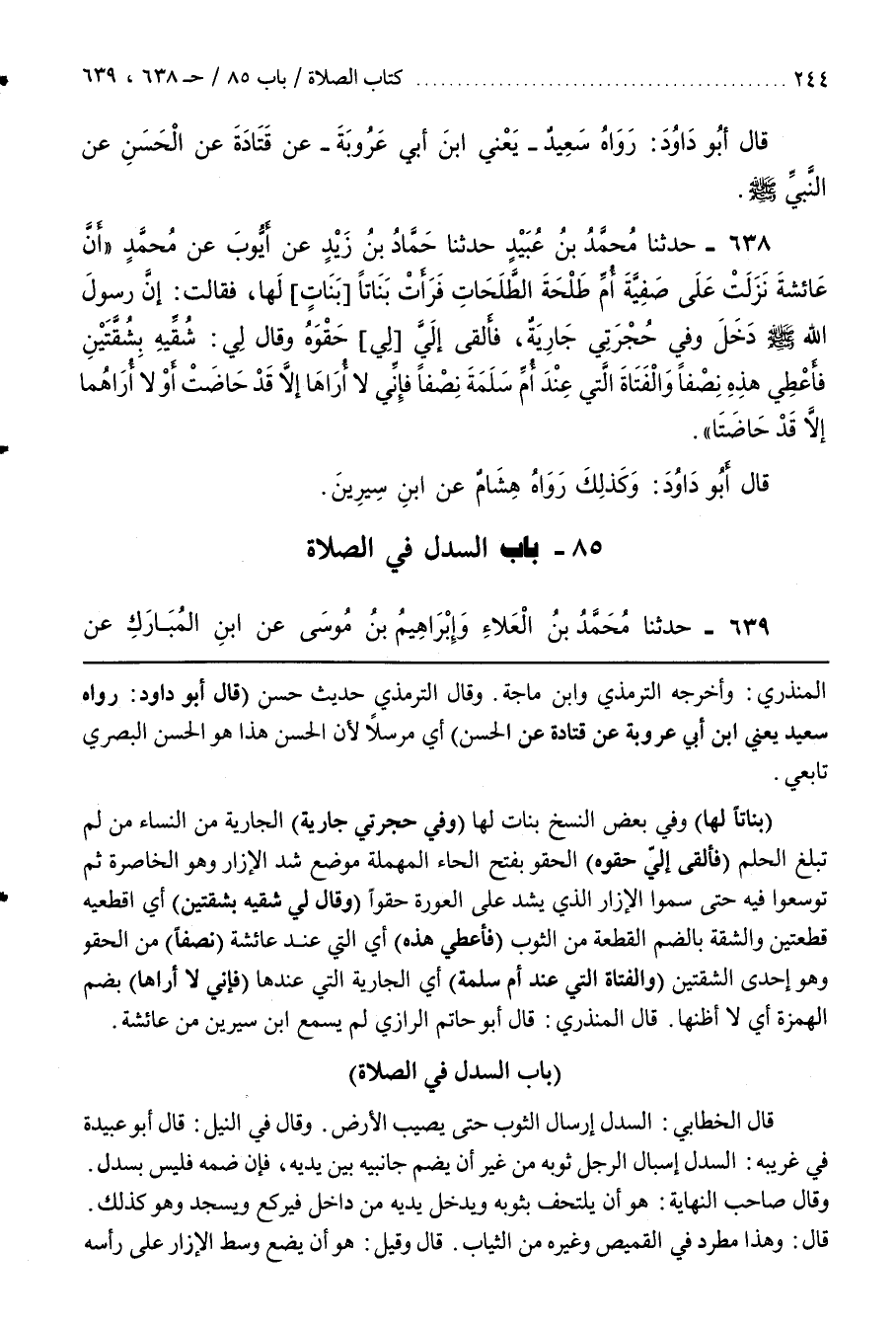 [643] قَالَ الْخَطَّابِيُّ السَّدْلُ إِرْسَالُ الثَّوْبِ حَتَّى يُصِيبَ الْأَرْضَ