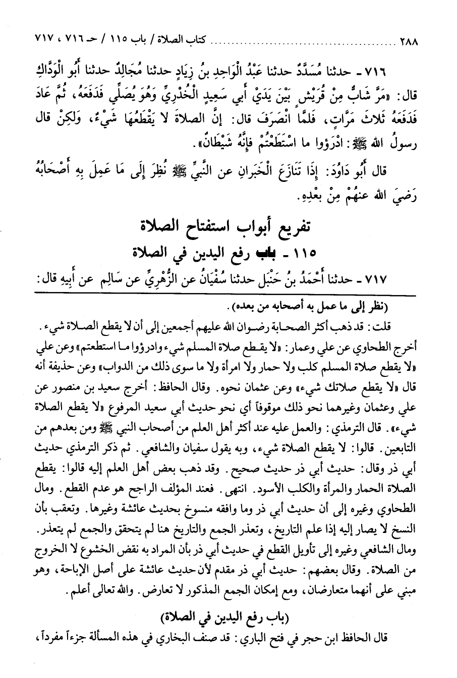 [720] (نَظَرَ إِلَى مَا عَمِلَ بِهِ أَصْحَابُهُ مِنْ بَعْدِهِ) قُلْتُ قَدْ ذَهَبَ أَكْثَرُ الصَّحَابَةِ رِضْوَانُ اللَّهِ عَلَيْهِمْ أَجْمَعِينَ إِلَى أَنْ لَا يَقْطَعَ الصَّلَاةَ شَيْءٌ