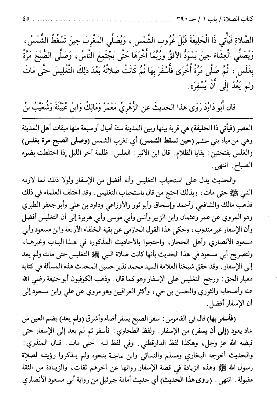وَقَدْ حَقَّقَ شَيْخُنَا الْعَلَّامَةُ السَّيِّدُ مُحَمَّدٌ نَذِيرٌ حُسَيْنٌ الْمُحَدِّثُ هَذِهِ الْمَسْأَلَةَ فِي كِتَابِهِ مِعْيَارُ الْحَقِّ وَرَجَّحَ التَّغْلِيسَ عَلَى الْإِسْفَارِ وَهُوَ كَمَا قال