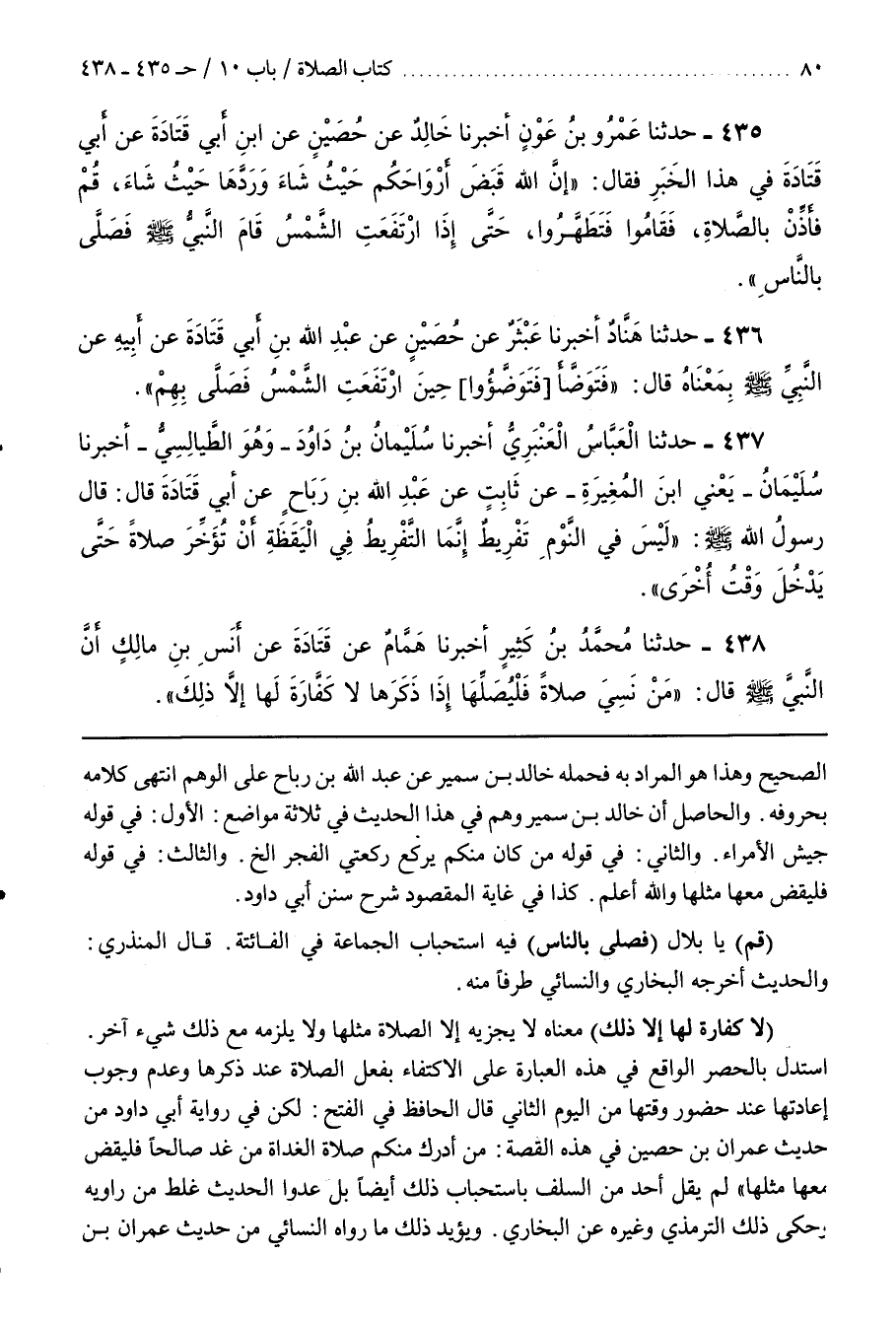 [439] (قُمْ) يابلال (فَصَلَّى بِالنَّاسِ) فِيهِ اسْتِحْبَابُ الْجَمَاعَةِ فِي الْفَائِتَةِ