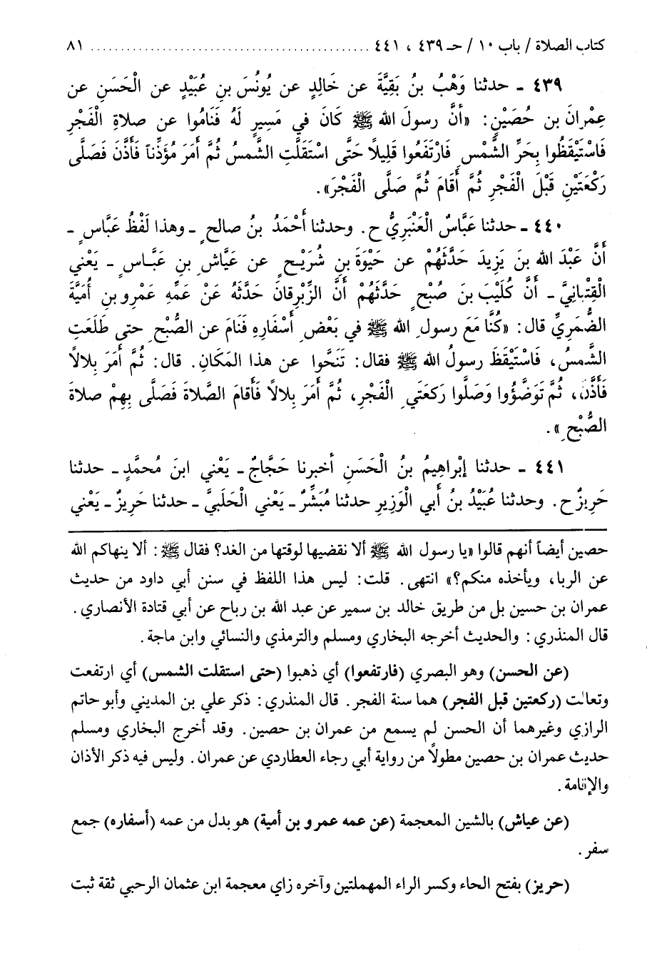 قَالَ المنذري ذَكَرَ عَلِيُّ بْنُ الْمَدِينِيِّ وَأَبُو حَاتِمٍ الرَّازِيُّ وَغَيْرُهُمَا أَنَّ الْحَسَنَ لَمْ يَسْمَعْ مِنْ عِمْرَانَ بْنِ حُصَيْنٍ