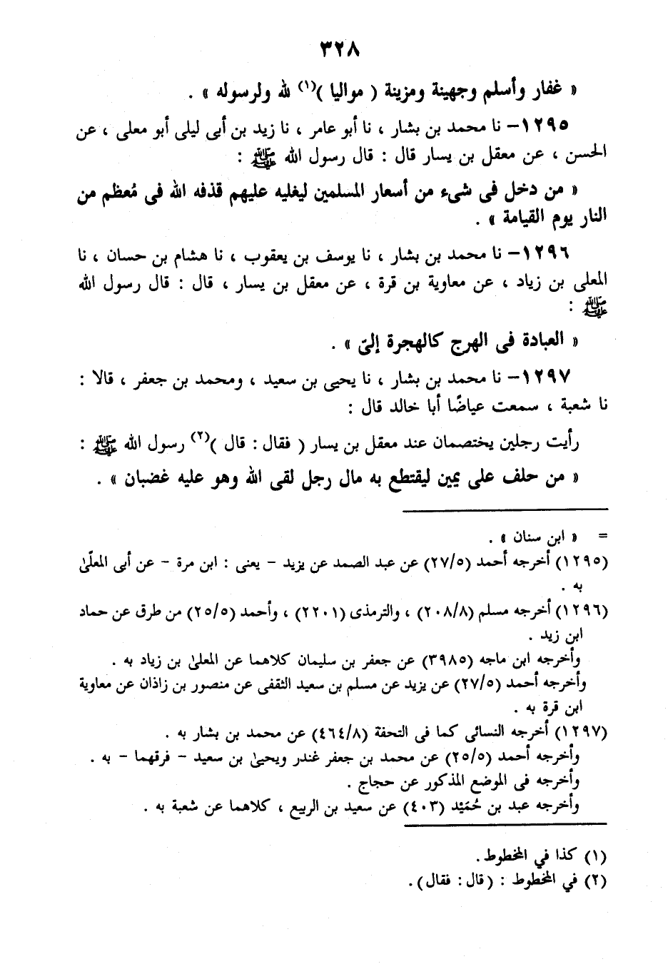 1296 - نَا مُحَمَّدُ بْنُ بَشَّارٍ، نَا يُوسُفُ بْنُ يَعْقُوبَ، نَا هِشَامُ بْنُ حَسَّانَ، نَا الْمُعَلَّى بْنُ زِيَادٍ، عَنْ مُعَاوِيَةَ بْنِ قُرَّةَ، عَنْ مَعْقِلِ بْنِ يَسَارٍ قَالَ: قَالَ رَسُولُ اللَّهِ صَلَّى اللهُ عَلَيْهِ وَسَلَّمَ: «§الْعِبَادَةُ فِي الْهَرْجِ كَالْهِجْرَةِ إِلَيَّ»