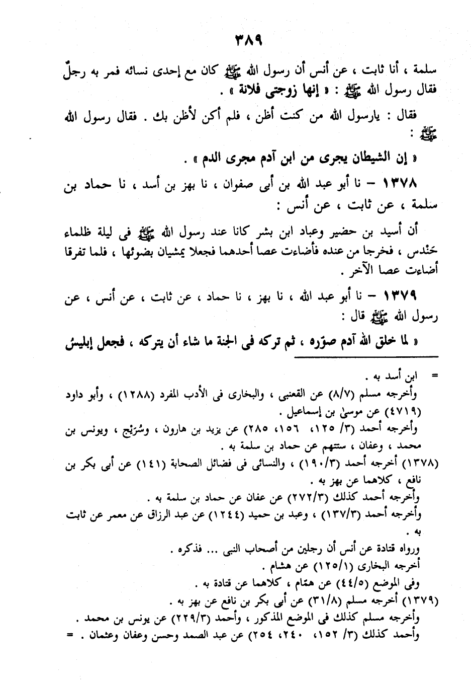 1379 - نَا أَبُو عَبْدِ اللَّهِ , نَا بَهْزٌ، نَا حَمَّادٌ، عَنْ ثَابِتٍ، عَنْ أَنَسٍ، عَنْ رَسُولِ اللَّهِ صَلَّى اللهُ عَلَيْهِ وَسَلَّمَ قَالَ: «§لَمَّا خَلَقَ اللَّهُ آدَمَ صَوَّرَهُ، ثُمَّ تَرَكَهُ فِي الْجَنَّةِ مَا شَاءَ أَنْ يَتْرُكَهُ، فَجَعَلَ إِبْلِيسُ يُطِيفُ بِهِ، فَلَمَّا رَآهُ أَجْوَفَ عَرَفَ أَنَّهُ خَلْقٌ لَا يَتَمَالَكُ»