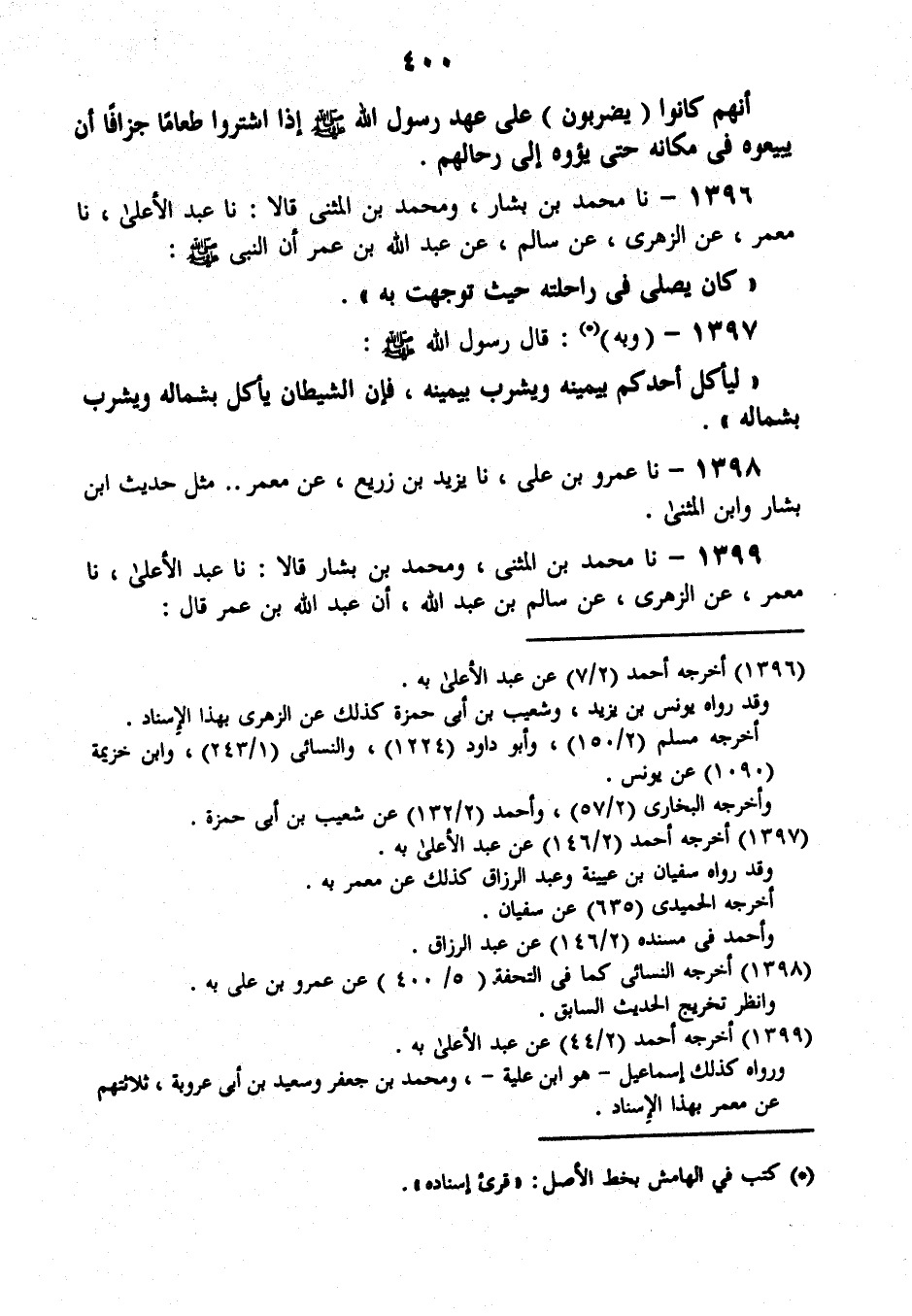 1396 - نَا مُحَمَّدُ بْنُ بَشَّارٍ، وَمُحَمَّدُ بْنُ الْمُثَنَّى، قَالَا: نَا عَبْدُ الْأَعْلَى , نَا مَعْمَرٌ، عَنِ الزُّهْرِيِّ , عَنْ سَالِمٍ، عَنْ عَبْدِ اللَّهِ بْنِ عُمَرَ، أَنَّ النَّبِيَّ صَلَّى اللهُ عَلَيْهِ وَسَلَّمَ كَانَ §يُصَلِّي فِي رَاحِلَتِهِ حَيْثُ تَوَجَّهَتْ بِهِ "