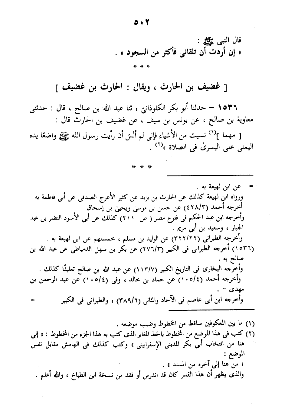 1536 - حَدَّثَنَا أَبُو بَكْرٍ الْكَلْوَذَانِيُّ , ثنا عَبْدُ اللَّهِ بْنُ صَالِحٍ , قَالَ: حَدَّثَنِي مُعَاوِيَةُ بْنُ صَالِحٍ، عَنْ يُونُسَ بْنِ سَيْفٍ، عَنْ غُضَيْفِ بْنِ الْحَارِثِ قَالَ: مَهْمَا نَسِيتُ مِنَ الْأَشْيَاءِ، فَإِنِّي لَمْ أَنَسَ أَنْ رَأَيْتُ رَسُولَ اللَّهِ صَلَّى اللهُ عَلَيْهِ وَسَلَّمَ §وَاضِعًا يَدَهُ الْيُمْنَى عَلَى الْيُسْرَى فِي الصَّلَاةِ