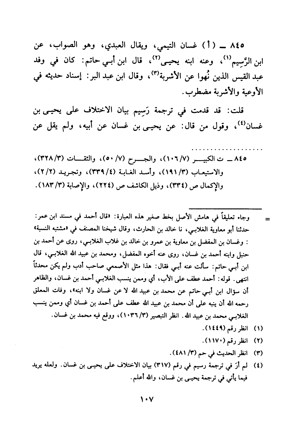 845 - اغَسَّان التَّيْمِيّ وَيُقَال الْعَبْدي وَهُوَ الصَّوَاب عَن بن الرسيم وَعنهُ ابْنه يحيى قَالَ بن أبي حَاتِم كَانَ فِي وَفد عبد الْقَيْس الَّذين نهوا عَن الْأَشْرِبَة وَقَالَ بن عبد الْبر إِسْنَاد حَدِيثه فِي الأوعية والأشربة مُضْطَرب قلت قد قدمت فِي تَرْجَمَة رسيم بَيَان الِاخْتِلَاف على يحيى بن غَسَّان وَقَول من قَالَ عَن يحيى بن غَسَّان عَن أَبِيه وَلم يقل عَن
