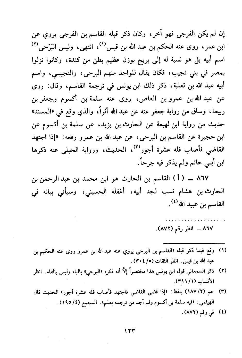 868 - االْقَاسِم بن الْحَارِث هُوَ بن مُحَمَّد بن عبد الرَّحْمَن بن الْحَارِث بن هِشَام نسب لجد أَبِيه اغفله الْحُسَيْنِي وَسَيَأْتِي بَيَانه فِي الْقَاسِم بن عبيد الله