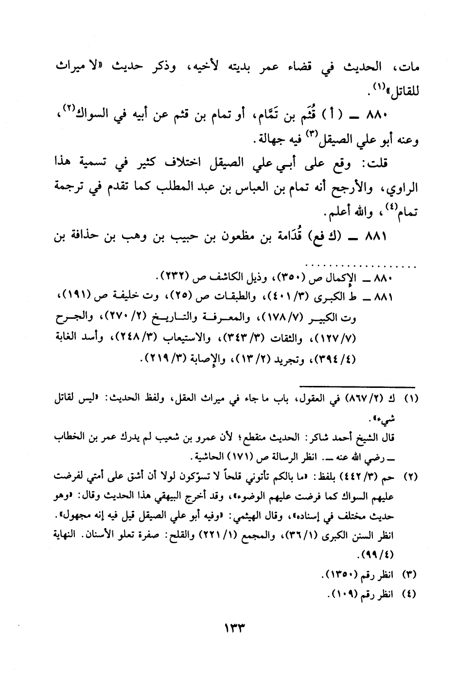 881 - اقثم بن تَمام أَو تَمام بن قثم عَن أَبِيه فِي السِّوَاك وَعنهُ أَبُو عَليّ الصيقل فِيهِ جَهَالَة قلت وَقع على أبي عَليّ الصيقل اخْتِلَاف كثير فِي تَسْمِيَة هَذَا الرَّاوِي والأرجح أَنه تَمام بن الْعَبَّاس بن عبد الْمطلب كَمَا تقدم فِي تَرْجَمَة تَمام وَالله أعلم