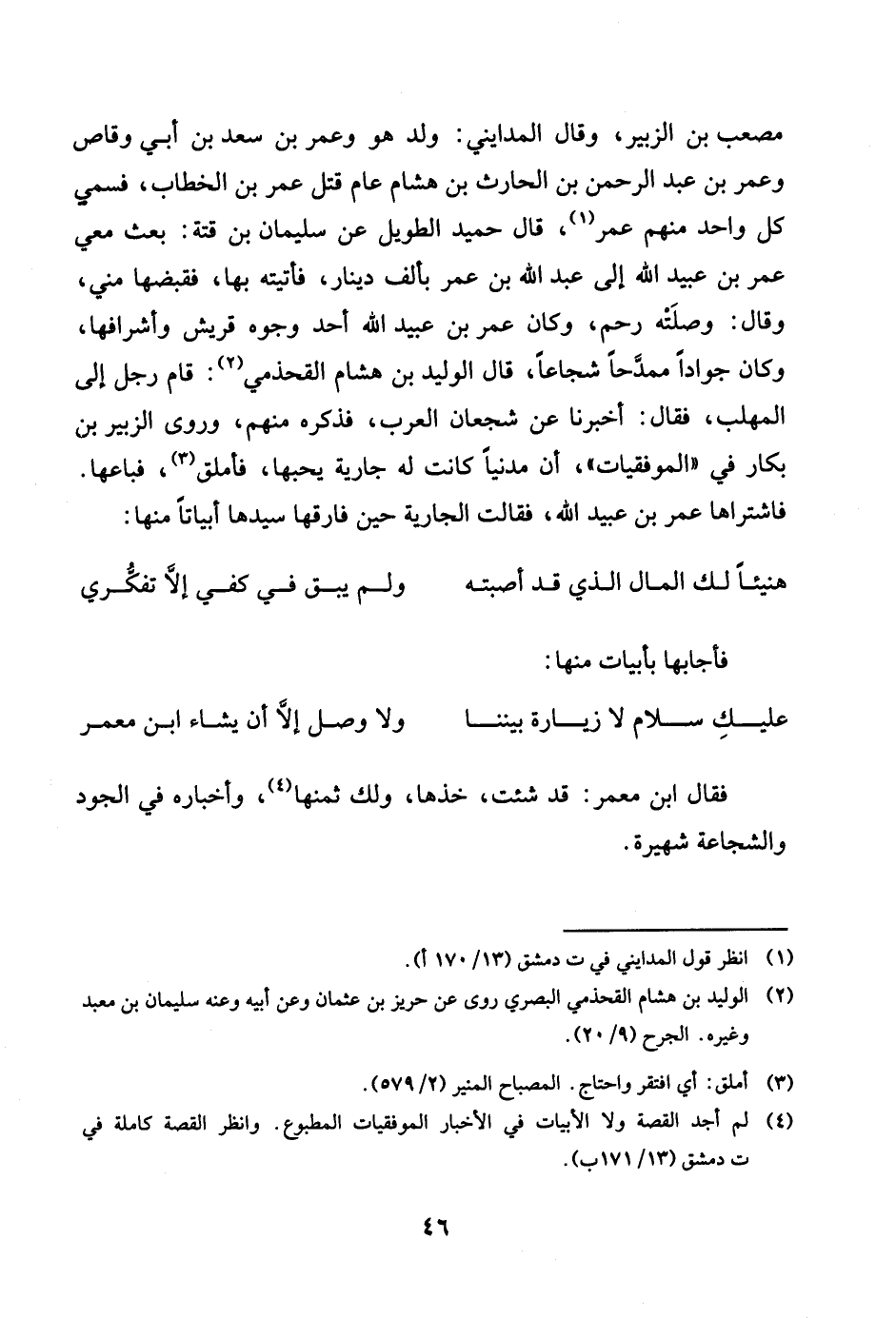 وَلَا وصل إِلَّا أَن يَشَاء بن معمر فَقَالَ بن معمر قد شِئْت خُذْهَا وَلَك ثمنهَا وأخباره فِي الْجُود والشجاعة شهيرة