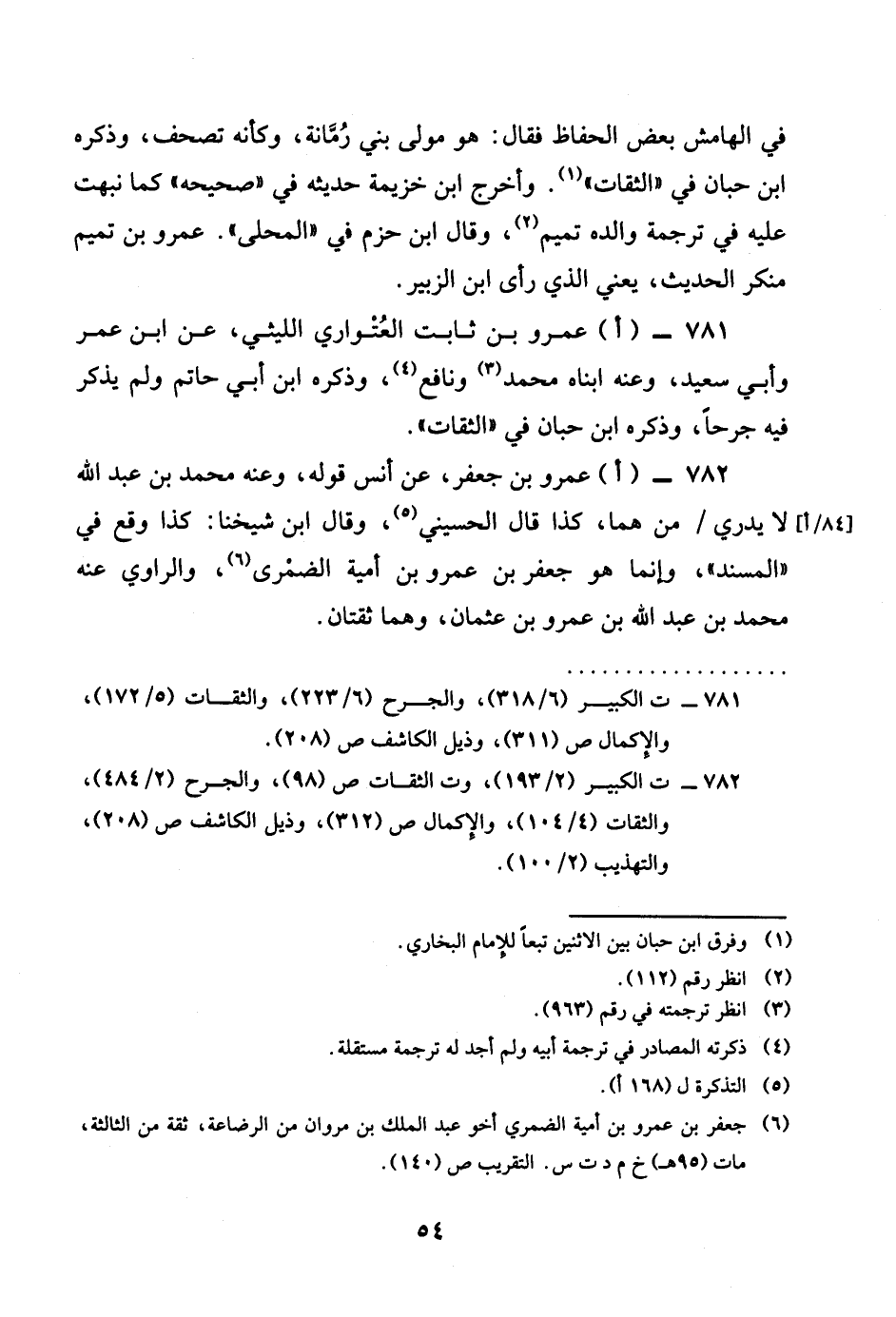 فِي الْهَامِش بعض الْحفاظ فَقَالَ هُوَ مولى بني رمانة وَكَأَنَّهُ تصحف وَذكره بن حبَان فِي الثِّقَات وَأخرج بن خُزَيْمَة حَدِيثه فِي صَحِيحه كَمَا نبهت عَلَيْهِ فِي تَرْجَمَة وَالِده تَمِيم وَقَالَ بن حزم فِي الْمحلى عَمْرو بن تَمِيم مُنكر الحَدِيث يَعْنِي الَّذِي رأى بن الزبير