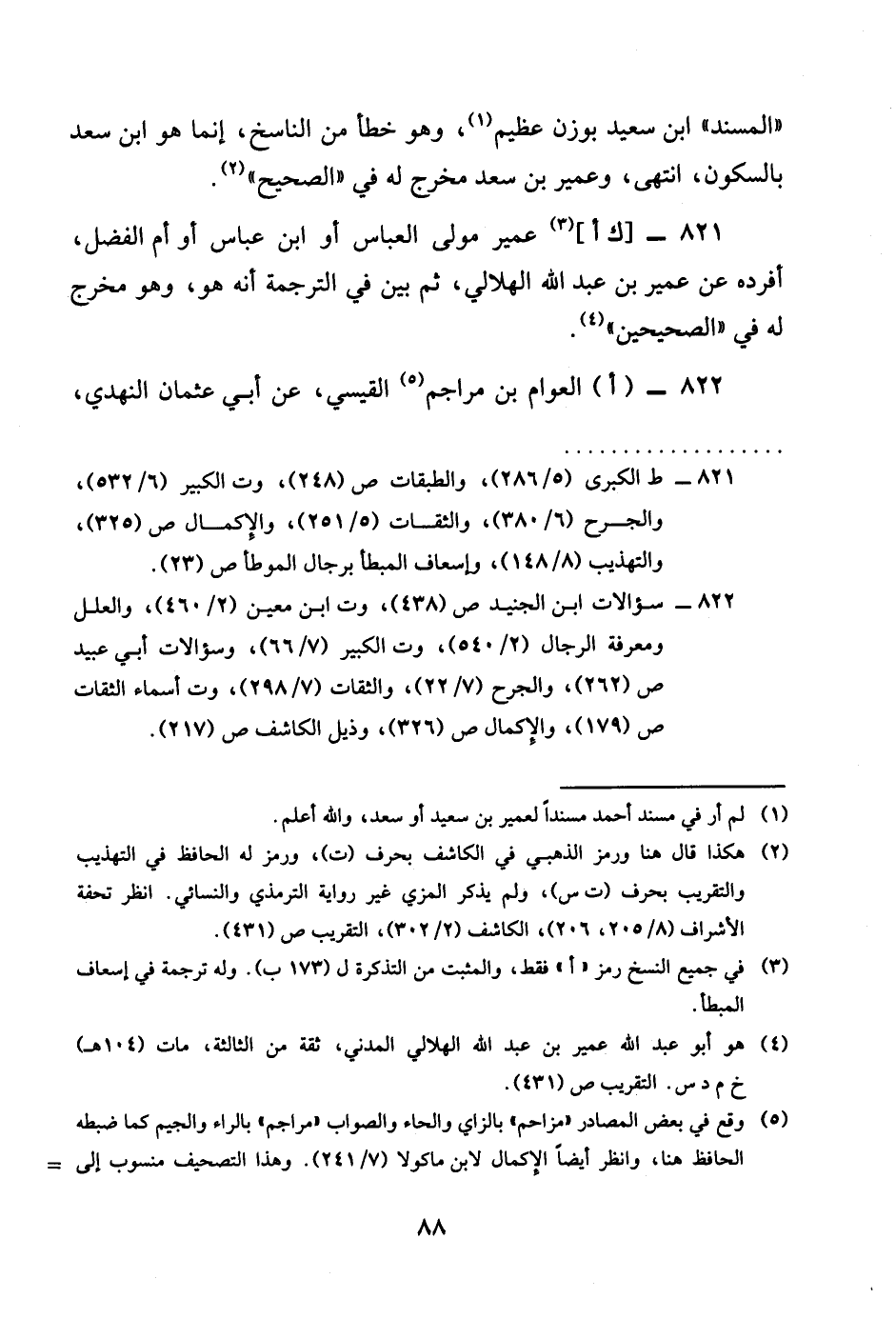 822 - ك اعُمَيْر مولى الْعَبَّاس أَو بن عَبَّاس أَو أم الْفضل أفرده عَن عُمَيْر بن عبد الله الْهِلَالِي ثمَّ بَين فِي التَّرْجَمَة أَنه هُوَ وَهُوَ مخرج لَهُ فِي الصَّحِيحَيْنِ